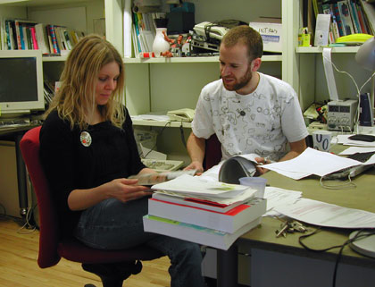 We have had a couple of requests for an image of us, so here we are looking through an article on Biojewellery in Bizarre magazine!